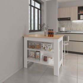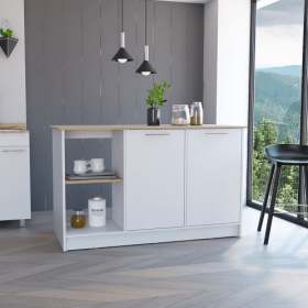Juniper Kitchen Island, Four Open Shelves, Two Cabinets -Light Oak (Option: Multicolor)